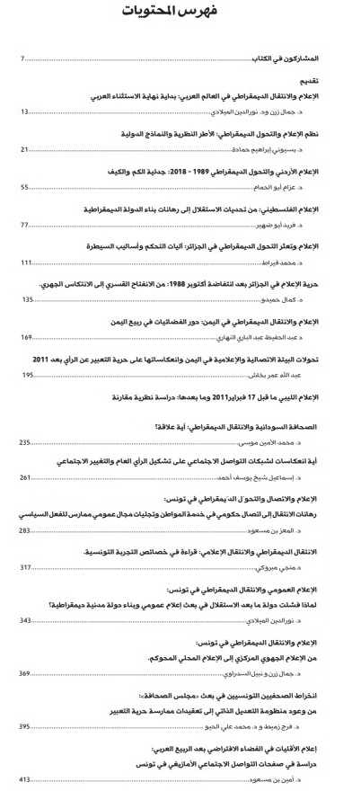 فهرس فصول كتاب الإعلام والانتقال الديمقراطي وسير المؤلفين والتقديم